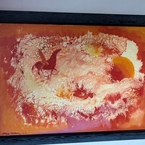 Herligt billede af Erling Andersen olie på malerpap kan nemt sendes