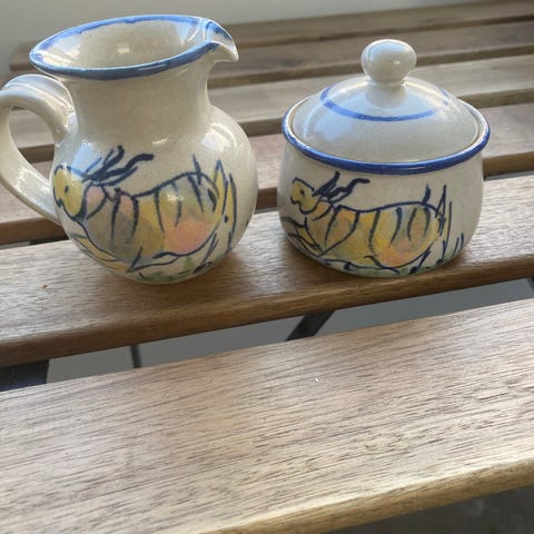 Gammelt fløde/mælkkande & sukker/kandisskål