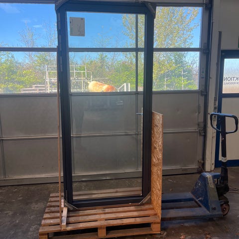 Terrassedør, træ/alu, hvid/sort, venstre ind. hvid indvendig, sort udvendig