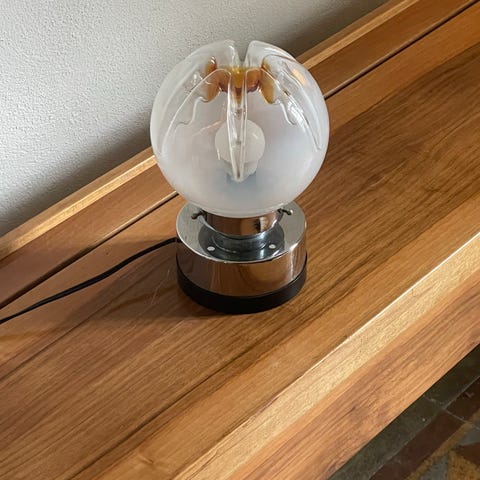 Stor og fabelagtig space age bordlampe i krom fra 1970’erne. Flot vintage stand, bortset fra en lille revne, se sidste billede.