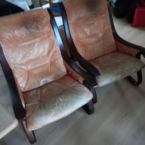 Stolene er af teaktræ og produceret i Danmark. De er professionelt pulverlakerede i sort højglans. De har aldrig stået ude. Fra et røgfrit hjem uden dyr. Prisen er for begge