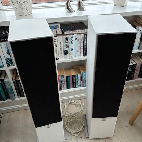 Højttalersæt bestående af 2 stk. Mentor 6 gulvhøjttalere. Sort i meget fin stand, nypris kr. 18.000,00.