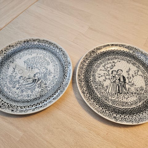 De 4 årstider. 4 stk Platter/tallerkener m ophæng. Ingen skår, ridser eller skrammer. Helt som nye. 27 cm i diameter. Sælges kun samlet. Prisen er for alle 4.