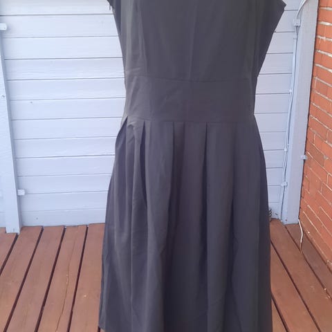 Kjolen er uden ærmer, har lynlås i ryggen samt sort underskørt.