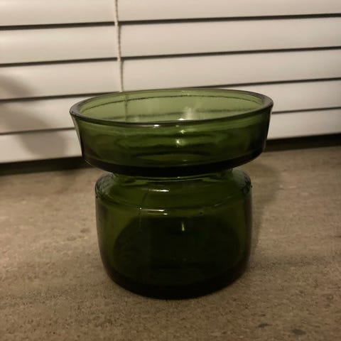 Glas. Højde 9,5 cm og 8,5 x 8,5 cm.