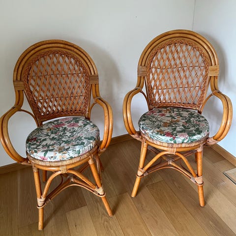 3 styk kurvestole og 1 bord. Stole og bord er i fin stand. Bordets glasplade måler 75 cm i diameter og er 51 cm højt. Sælges samlet.
