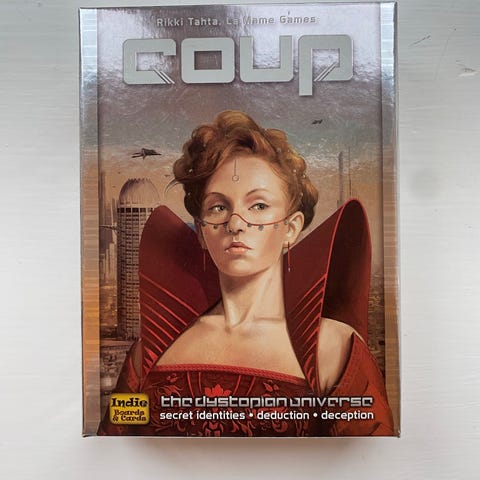 Coup er et enkelt spil, men de mange muligheder for bluff og spidsfindigheder gør det til noget helt særligt. Historien i Coup udspiller sig i samme futuristiske univers som spillet The Resistance, og i lighed med The Resistance er det vigtigt at kunne holde masken - men denne gang handler det ikke om at samarbejde ...