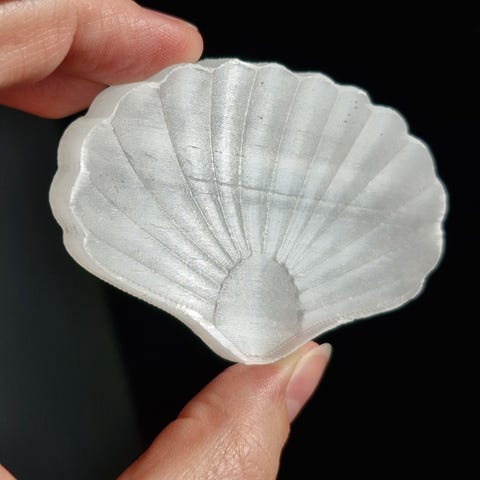 2 - stor muslingeskål. H 5 cm, L 15 cm, B 12 cm. Meget dekorativ genstand. Kan evt anvendes til opbevaring af smykker/ småting. Fin stand.