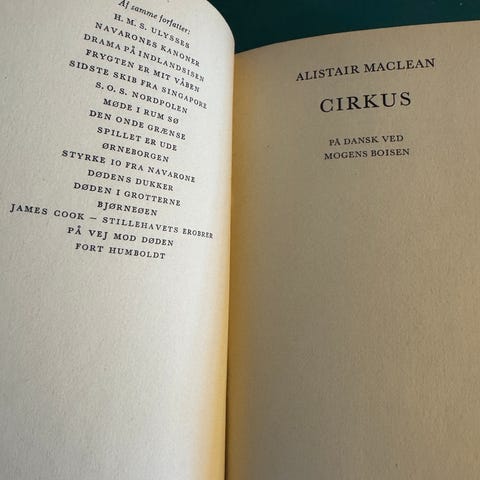 Cirkus, Alistair Maclean, genre: krimi og spænding, Hardback med smudsomslag. Sælges for 25 kr. Kan sendes på købers regning. Har stor bogsamling, hvis du mangler læsestof