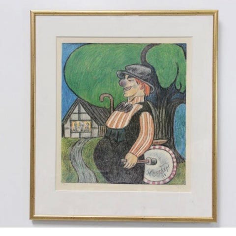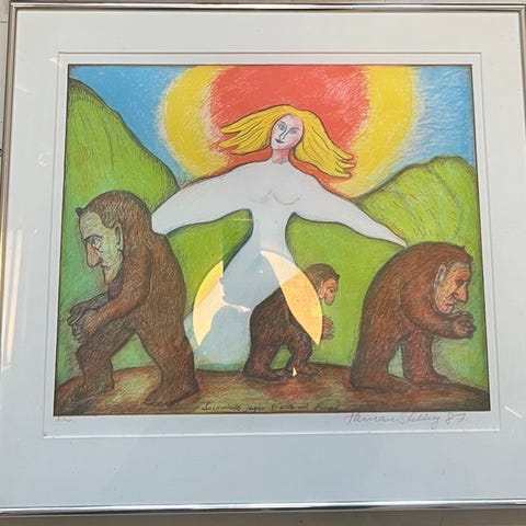 Litografi i ramme Herman stilling rød trold