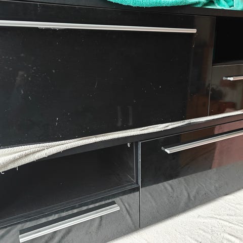 Skærm har ridser. Fjernbetjeningen mangler