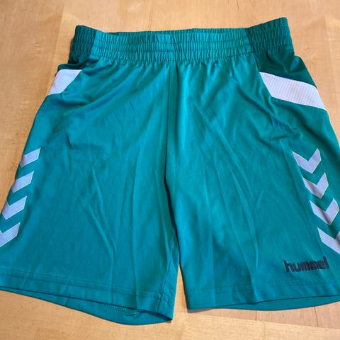 Grønne Shorts fra Hummel - kan også bruges som badeshorts, da der er net-trusser inden i. Bindebånd i livet og elastik. 2 forskellige farver "Hummel Striber" på hver side af bukserne. Står som nye.