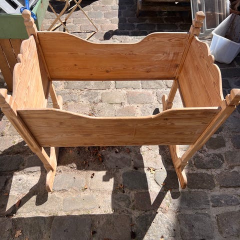 Almue vugge udført i teaktræ.