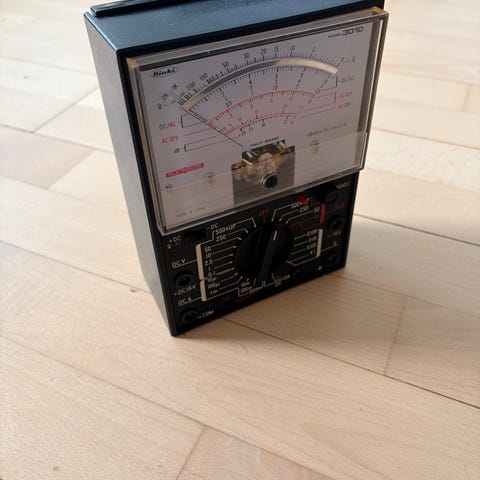 Flot gammelt måleinstrument med analog viser og skala i både volt og decibel.