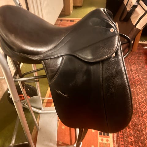 Dressursadel, 18 tommer , Husar Special, Ældre brugte, men velholdt Schweizisk dressursadel.