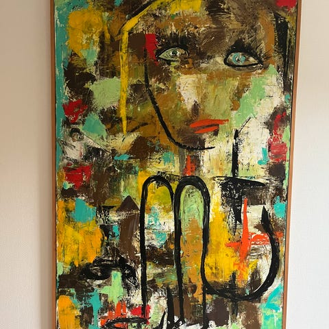 Maleri af Rosita Engly: "Håber på lys i mørket". 100*150cm.