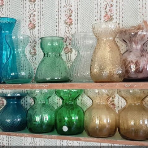 Gamle fine glas til hyacint i smukke farver. Alle hele og fine