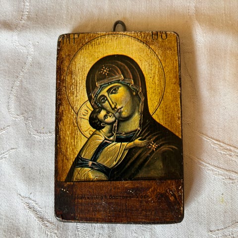 Fint lille billede / Ikon af Therese af Liseux. En af de mest populære og elskede helgener i den katolske kirke. Diameter : 10 cm.