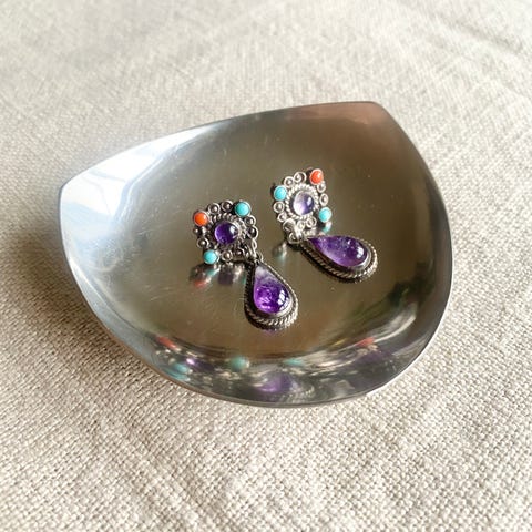 Helt vidunderlige og sjældne håndlavede vintage øreringe i 925 Sterling sølv med ægte ametyst - en ædelsten - turkis og koral. Så smukke. Du finder ikke deres lige 😌