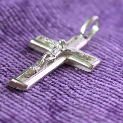Andet smykke, Jesus hængende på korset i blank metal - sølv eller forsølvet - andet materiale og marmor - til at hænge op på væggen eller andet, det store måler 12 centimeter og det lille 5,5 centimeter. Jeg har to forskellige og prisen starter fra