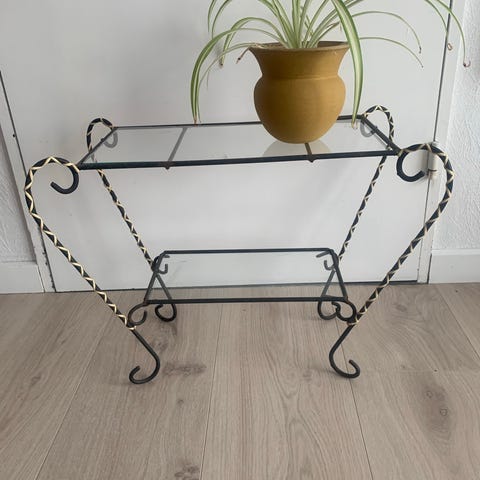 Blomsterbord, glasbord, metalbord med glasplade