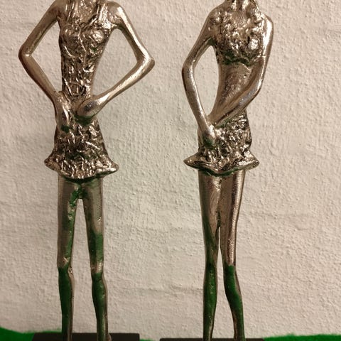 metal figurer, ?, En rød barnevogn og en rød tilsvarende trehjulet cykel med aftagelig vogn. Måske til den kommende moder ?