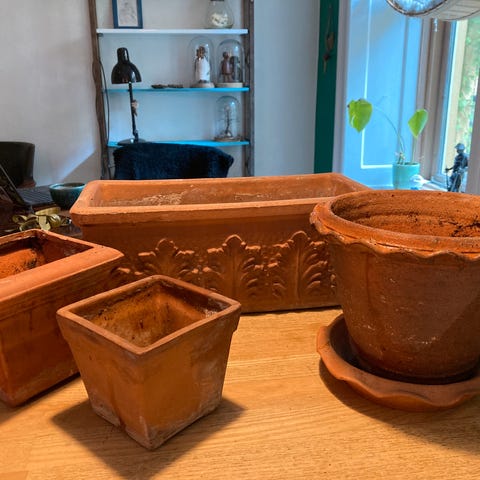 urtepotter i terracotta med rosa glasering