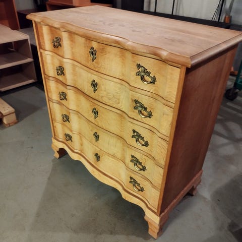 Fint gammelt møbel. Brug det med dens patina ellers let at fikse med lidt maling.