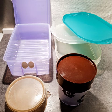 Græsk opbevaring af plastikposer samt brødbakke