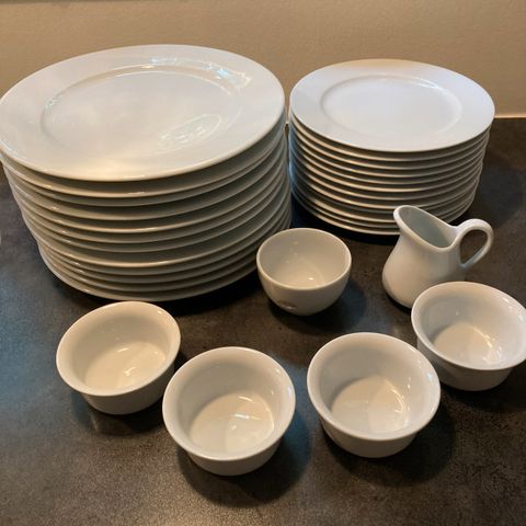 Pillivuyt porcelæn, skåle, sovsekande/skiller, soufleforme, små tærteforme m.v.