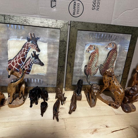 Sælger disse 3 små og søde savanne dyr i træ af ældre dato.