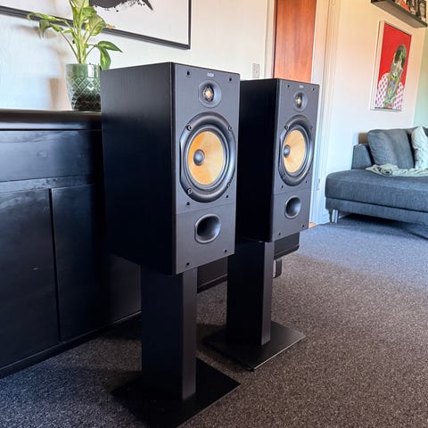 Nedsat. Giv et bud - Velspillende to-vejs gulvhøjttalere. Jeg har købt dem i 1982/83, så én ejer. Kræver kraftig forstærker, har selv brugt Rotel 2x100w (8 ohm) (se andre annoncer). Ingen skader på enheder, front eller på net over diskant, men på overside og fødder. Tilslutninger er forbedret af hifi værksted. Monsterkabler kan medfølge, varierende længde. Vægt 29 kg/stk.