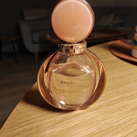Den har været i brug, så kig på billedet, for at vide, hvor meget der er i flasken. Den er dog tæt på fuld.