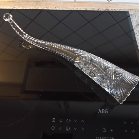 Den er knækket lidt som du kan se på billedet ellers er den ok
