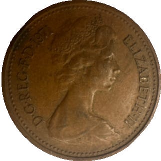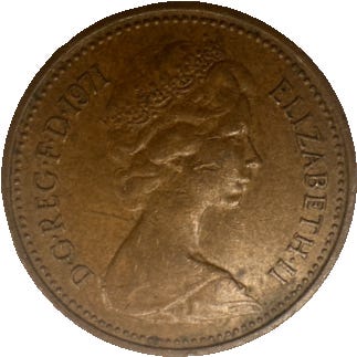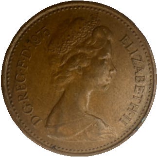 1 new penny fra United Kingdom of Great Britain and Northern Ireland (1976)
