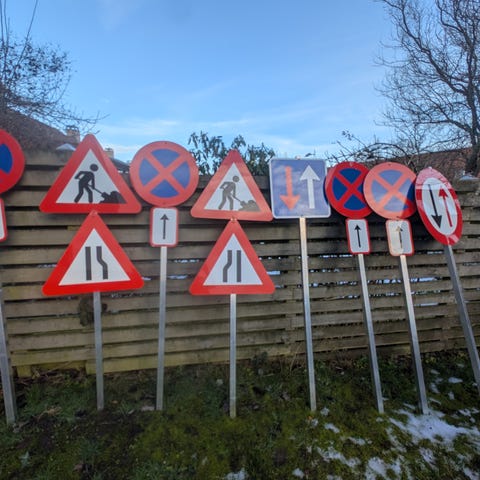 Vejskilte med gummiklods.