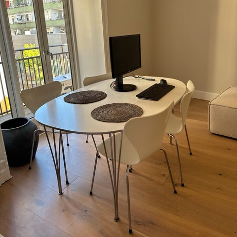 Fint og velholdt Ellipsebord. Skal afhentes på Vesterbro :-) OBS: stolene er solgt.