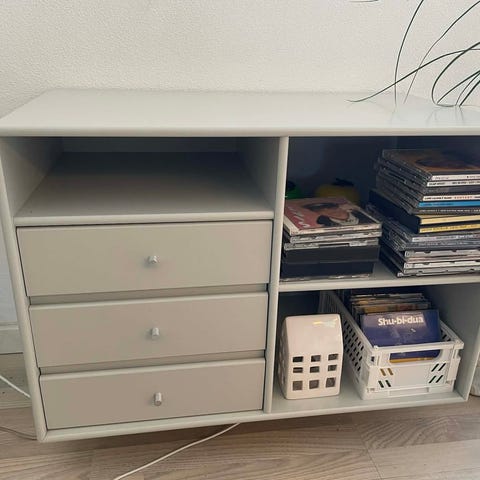 Entremøbel, Sælger et entrebænk, TV bord, opbevaringreol eller hvad man vil bruge det til. Har oprindelig været et tv bord m hylder, men fik det lavet om med kurve som jeg købte seperat. Og brugte det i entreen til vores vintertilbehør. Fremstår med patina og en lille smule vakkelvorn ved enderne, men virker fint. Kan evt males om til en anden farve og så er den så fin igen. En fin hynde vil være så fint til. Prisen er efter standen.