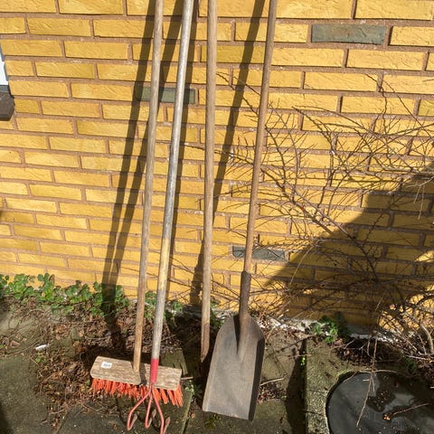Have redskaber og 5 stor Krukker+græsfrø som r ubrugt! Plus 2 puk