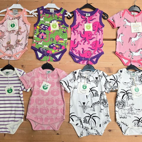 Alle er langærmet, kun det sidste billede er med korte ærmer eller strop body'er.