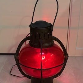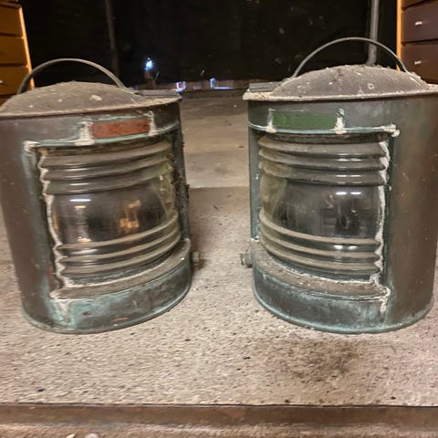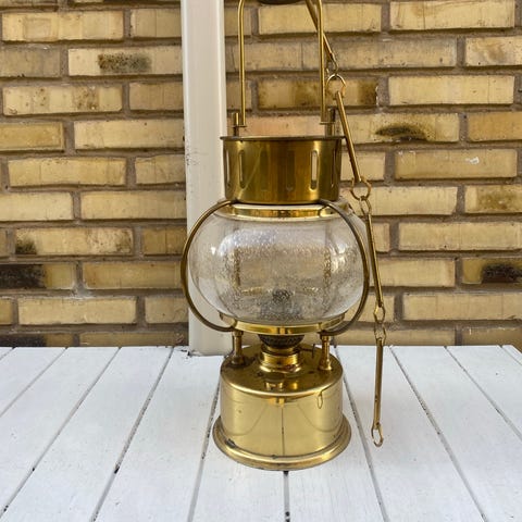 Virkelig flot olielampe i messing fra Fregatten Jylland. Måler 50 cm i højden og 23 cm i diameter.