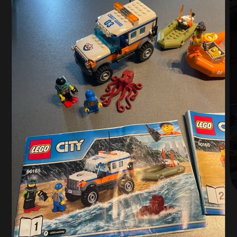 Med alle brikker pånær en gul redningsvest og så en flad hvid brik med propelklistermærke. Måske dukker de op i vores store samleprojekt og bliver så tilføjet.