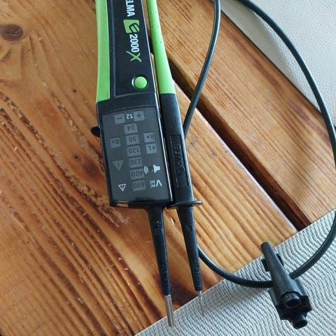 Spændingstester, elma 2100x, Elma 2100X er en spændings-/gennemgangstester for ekstra høj sikkerhed og med mange smarte detaljer. Bl.a. lang fleksibel ledning, smart fastgørelse af prøvepenne med afstand, så de passer direkte i stikkontakten. Geniale prøvespidser med både 2 og 4mm diameter samt Integreret beskyttelseshætte med opbevaringslommer for spidser.