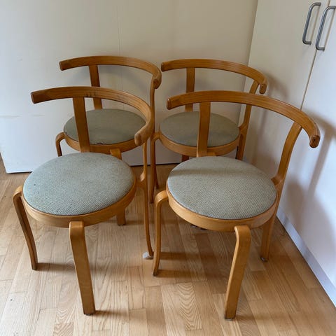 4 stk stole med rødt uld betræk 1 med en lille skade på stoffet