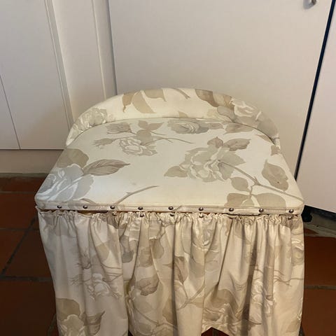 En puff som man kan sidde på også. Kan sagtens komme nyt betræk på. Helt ideelt også til at skulle male. En gammel lækker sag