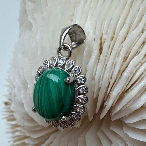 Vedhæng, sølv, Sterling sølv / malakit / Jerusalem / Israel