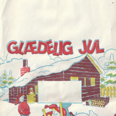 Brugt juleplastikpose. Tydelige brugsspor. På posen står der: