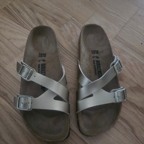 Birkenstock Boston sandaler i Metallic Anthracite läder str 38, blå/soft foot bed (narrow fit som virker ret bred. Jeg kunde ikke märke det var narrow fit, som jeg normalt slet ikke kan bruge) som jeg købte fra Yoox i 2017 billigt til 560 kr og brugt med sokker på, indendørs, moske 10 til 20 gange i få timer. Jeg kan ikke huske hvor meget jeg brugte dem men de var lidt for stramme så jeg gav op. Den blå tekst er slidt på hälen og som ny indeni. Du kan se på billederne hvad stand de er i, lige som nye synes jeg.