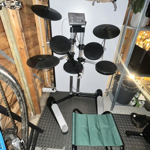 Jeg har været rigtig glad for dette trommesæt af mærket Roland med en fænomenal lilletromme og to pedaler.
