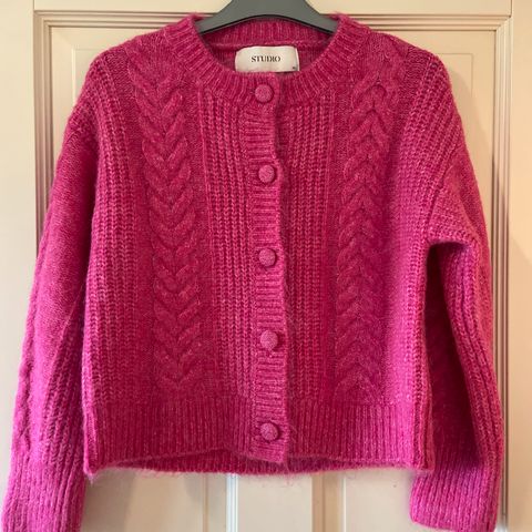 Lækker lang cardigan med hætte fra Studio Clothing str. S (42/44) Ny, blot vasket